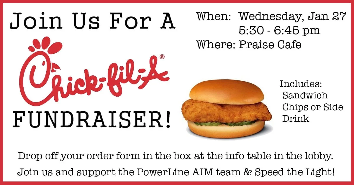 Join us for a Chick-fil-A Fundraiser and support the PowerLine AIM team and Speed the Light!