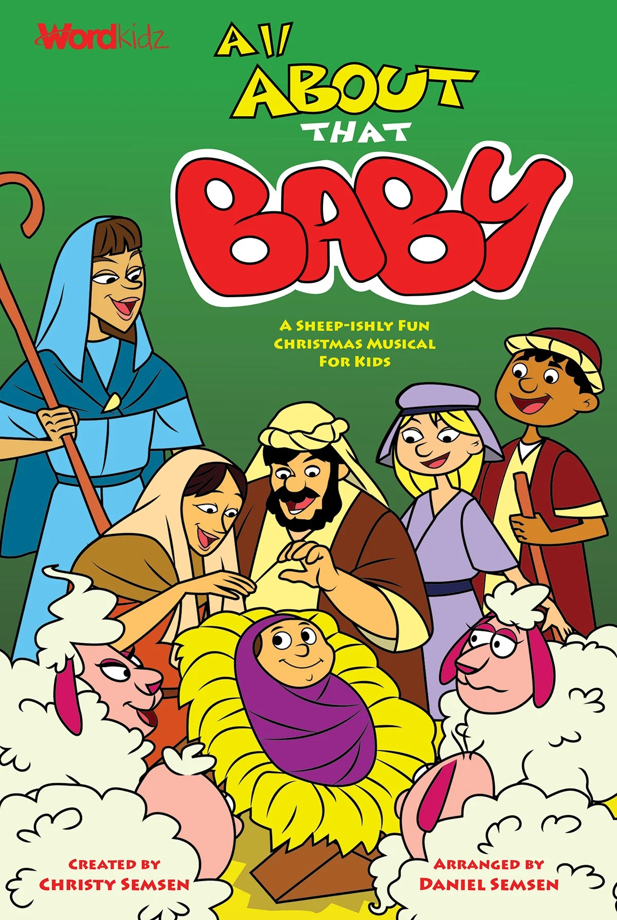 People everywhere are making the journey to the place of their birth, in compliance with Caesar’s decree that everyone should register for the census. This results in the little town of Bethlehem overflowing with people arriving from out of town. Nathaniel, a lovable but scatter-brained, late-for-work shepherd, bumps into two of those travelers, Joanna and Simone, as he rushes to take his shift at watching the flock. The other shepherds (his sisters Miriam and Abigail), along with Judah, are waiting for Nathaniel—late once again—to arrive. Thus begins a story that is All About That Baby, with some shepherds, angels, “out-of-towners”…and singing, talking sheep to guide us along the way!