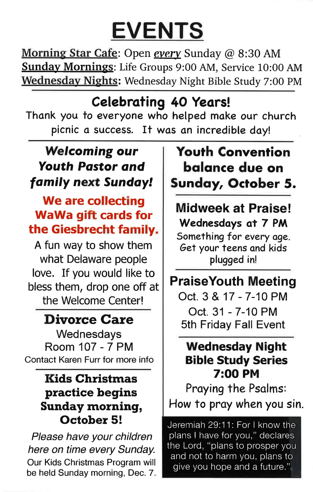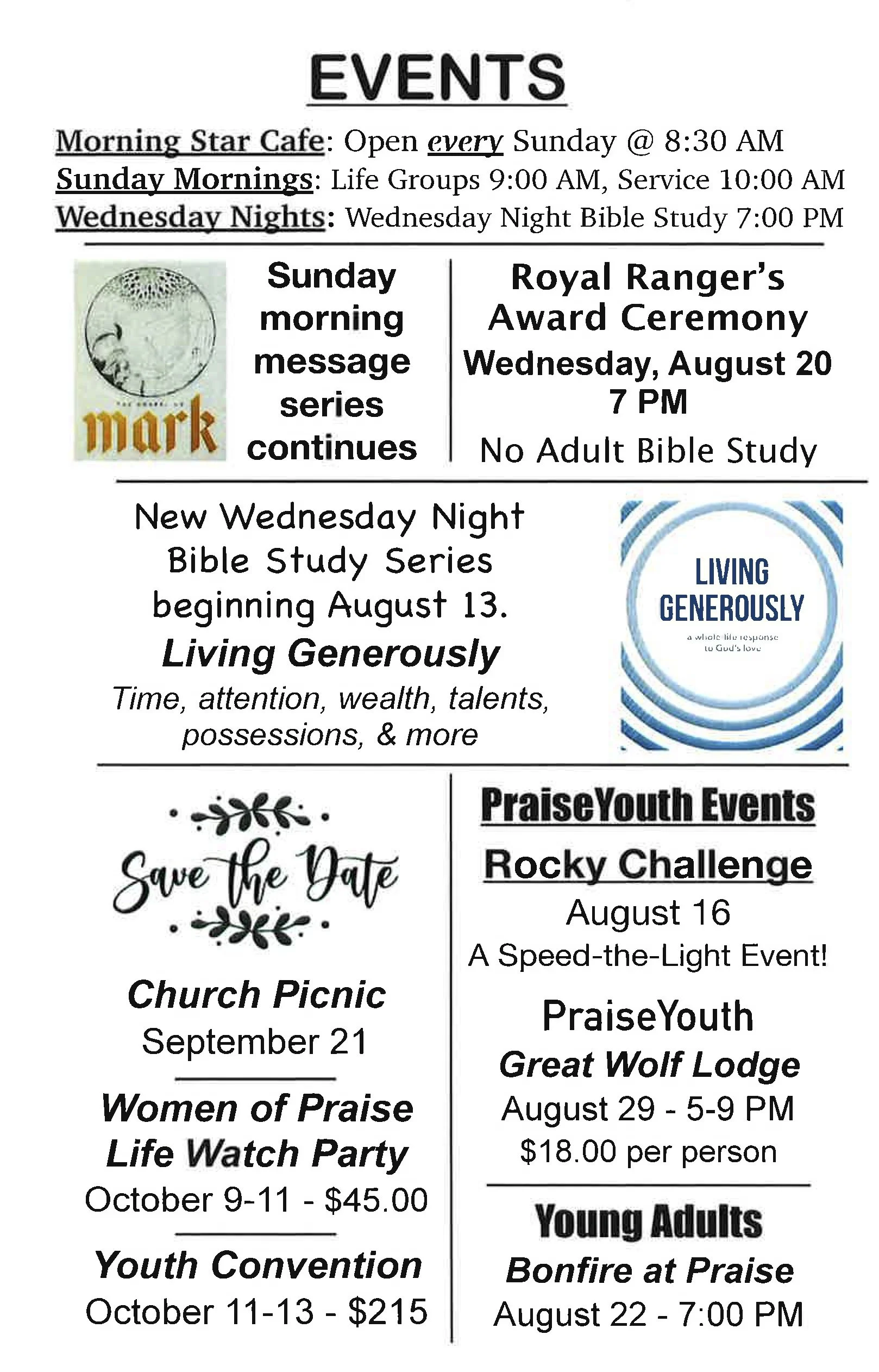 Stay up to date with the latest news and events taking place at Praise Assembly.