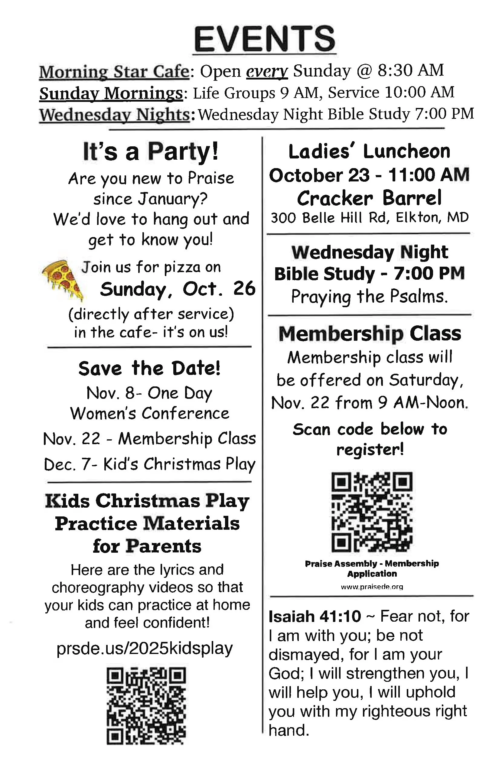 Stay up to date with the latest news and events taking place at Praise Assembly.