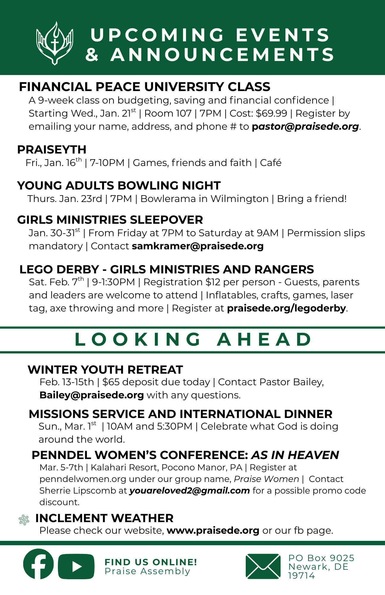 Stay up to date with the latest news and events taking place at Praise Assembly.