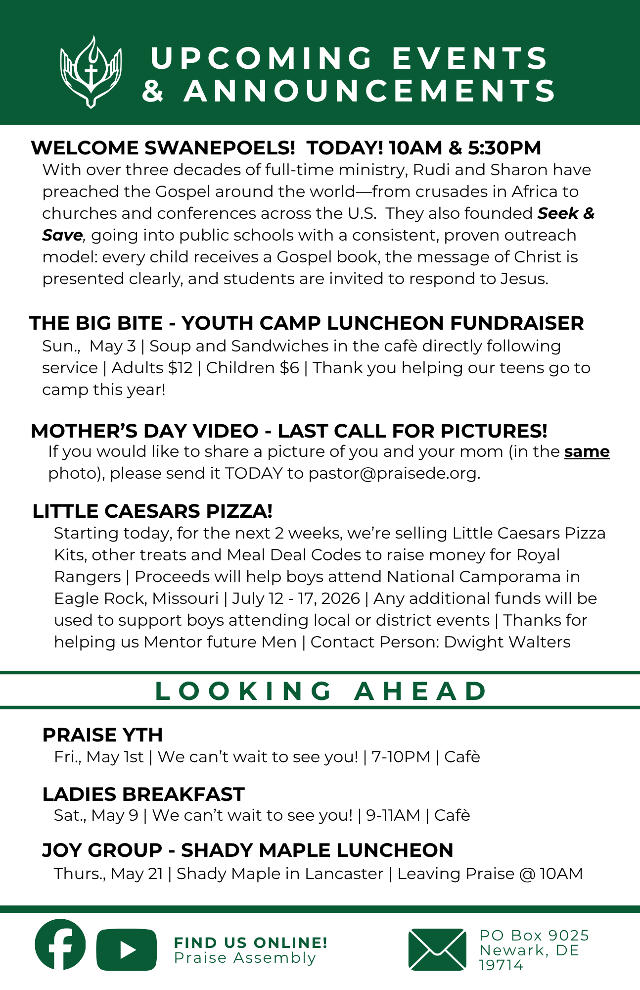 Stay up to date with the latest news and events taking place at Praise Assembly.