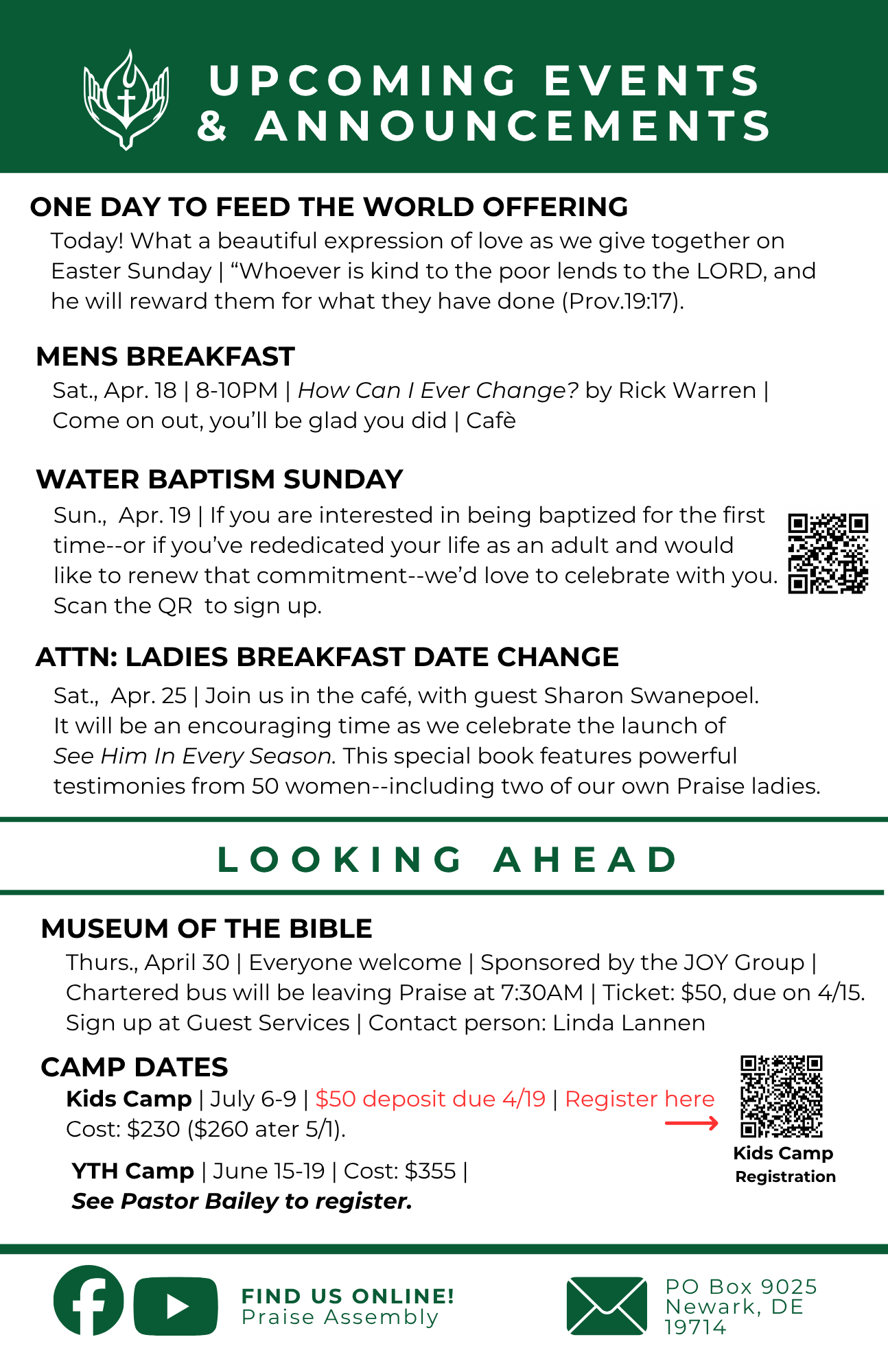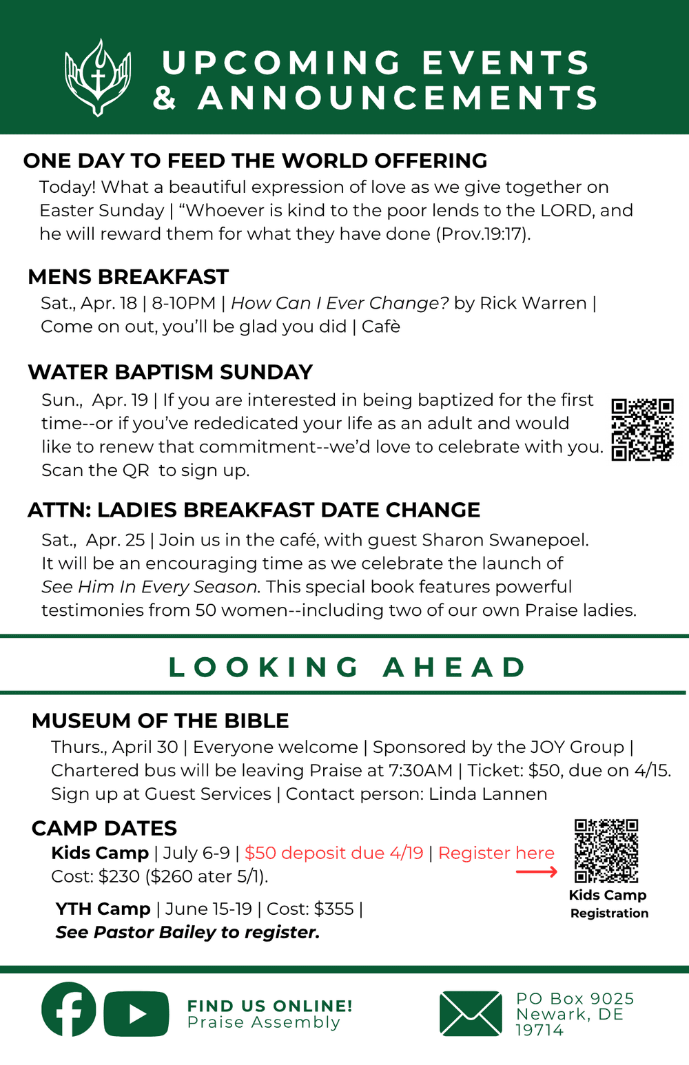 Stay up to date with the latest news and events taking place at Praise Assembly.